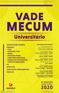 A Editora Manole, mais uma vez acompanhando as necessidades dos profissionais e dos estudantes, viabiliza agora uma edição de coletânea legislativa contendo: Constituição Federal, Códigos (Civil, de Processo Civil, Penal, de Processo Penal, Tributário Nacional, de Defesa do Consumidor e de Trânsito Brasileiro), CLT, Estatutos (da Criança e do Adolescente, da OAB, da Cidade, do Idoso, do Desarmamento, da Microempresa e da Empresa de Pequeno Porte, da Igualdade Racial, da Juventude e da Pessoa com Deficiência), legislação complementar, súmulas do STF, do STJ e do TST, orientações jurisprudenciais e precedentes normativos do TST. A legislação desta edição está atualizada até o dia 14.01.2021.