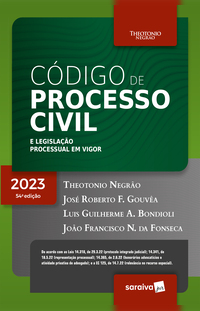Chegou ao mercado a tão aguardada edição 2023 do consagrado CÓDIGO DE PROCESSO CIVIL E LEGISLAÇÃO PROCESSUAL EM VIGOR, mantendo a essência de uma obra que se destaca pelos minuciosos comentários artigo por artigo, acrescidos de conteúdo doutrinário, as principais decisões de Tribunais e referências a outros artigos e leis. Trata-se de obra imprescindível aos profissionais do Direito e também aos estudantes que ingressam ao estágio em Direito e que necessitam de informações seguras e precisas a respeito de todo o universo do Direito Processual Civil. A presente 54ª edição está atualizada de acordo com as Leis 14.318, de 29.3.22 (protocolo integrado judicial), 14.341, de 18.5.22 (representação processual), 14.365, de 2.6.22 (honorários advocatícios e atividade privativa de advogado), e a EC 125, de 14.7.22 (relevância no recurso especial). Data de fechamento da edição: 6-1-2023.