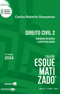 A Saraiva Educação, selo SaraivaJur, apresenta a 12ª edição da obra Direito Civil 2, da Coleção Esquematizado®, do experiente autor Carlos Roberto Gonçalves, com a coordenação de Professor Lenza. Este volume é dedicado aos contratos em espécie e ao direito das coisas. A obra é indicada para os alunos de graduação e para os candidatos a concursos públicos, seja da área jurídica ou não jurídica, de nível superior ou mesmo de nível médio. Com projeto gráfico especialmente pensado para otimizar a preparação dos alunos para provas e exames, a metodologia aplicada na obra proporciona ao leitor uma leitura mais dinâmica e estimulante, favorecendo a assimilação do conteúdo. Além de apresentar recursos gráficos e palavras-chaves em negrito durante todo o livro, que favorecem a assimilação dos principais temas, ao final de cada capítulo, o assunto é apresentado em formato de quadro com resumo da matéria e de questões de provas de concursos. Esta edição oferece ao leitor um material superatualizado, repleto de exemplos práticos e sintonizado com a jurisprudência dos tribunais superiores. Esta obra é indispensável para o aluno que deseja compreender os institutos do Direito Civil. Data de fechamento da edição: 20/11/2023.